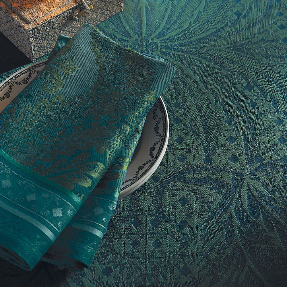 Fabriqué en France par GARNIER THIEBAUT, ce chemin de table fait partie de la collection ISAPHIRE émeraude.