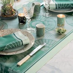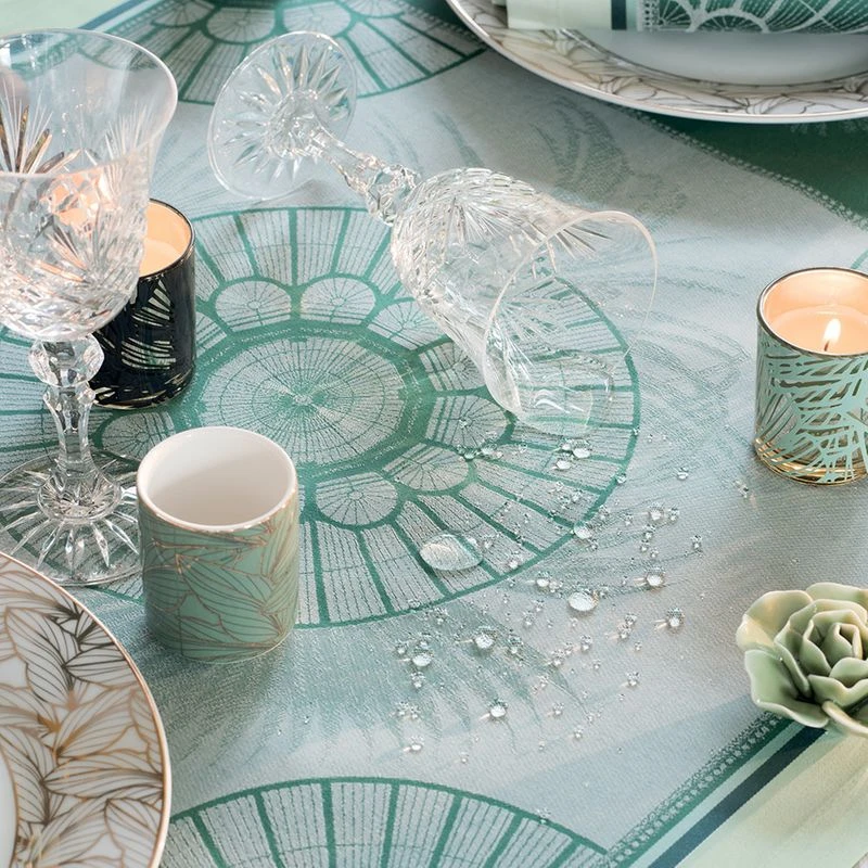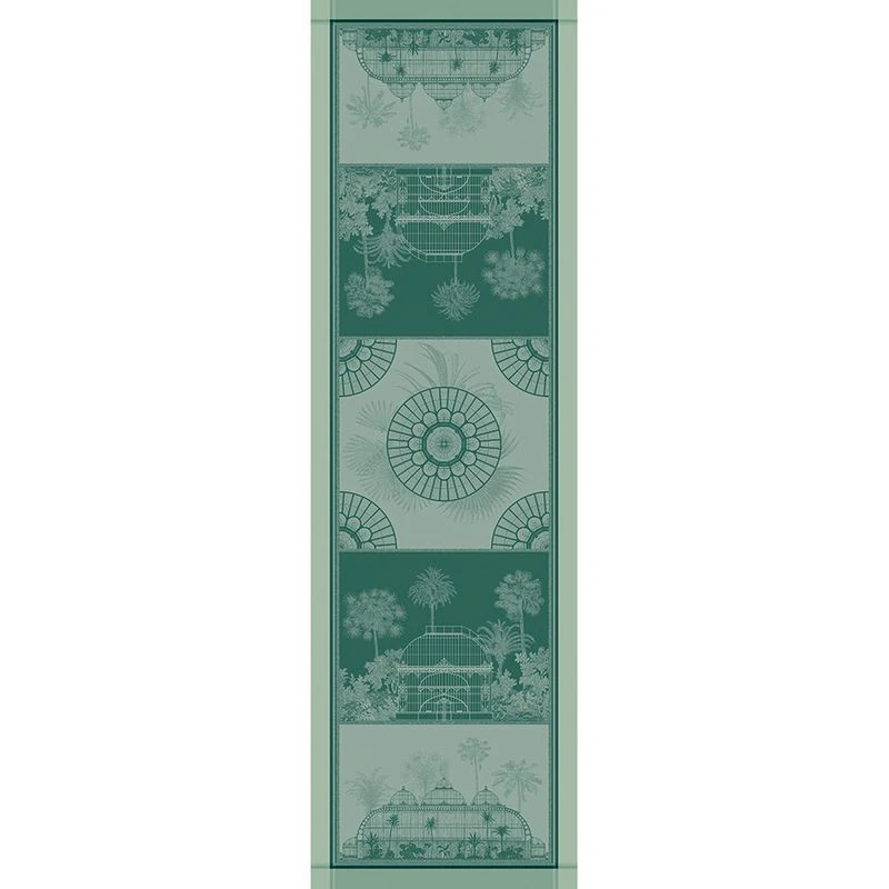 Chemin de table pur coton antitache déperlant Serres royales vert empire GARNIER-THIEBAUT