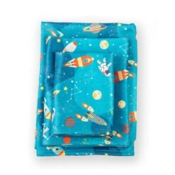 Drap de bain enfant 60% coton/40% polyester, toute douce. Recto face imprimée, verso face bouclette. Caractéristiques de Drap de douche Galaxies sideral :