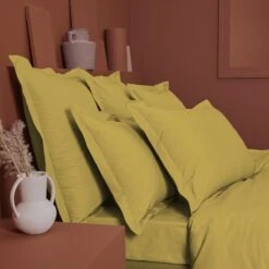 Drap housse uni en percale de coton 90 fils/cm², 100% coton, traité anti-rétrécissement. Bonnet 30 cm pour matelas standard. Caractéristiques de Drap housse b30 Olana denim :