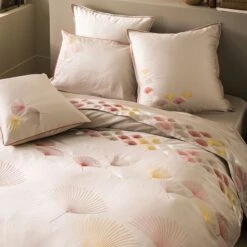 Une envolée de pistils aux couleurs automnales… Une broderie exaltante de naturel et de légèreté, Satin uni assorti : AVA UNI taupe. Caractéristiques de Drap plat Pistil automne :