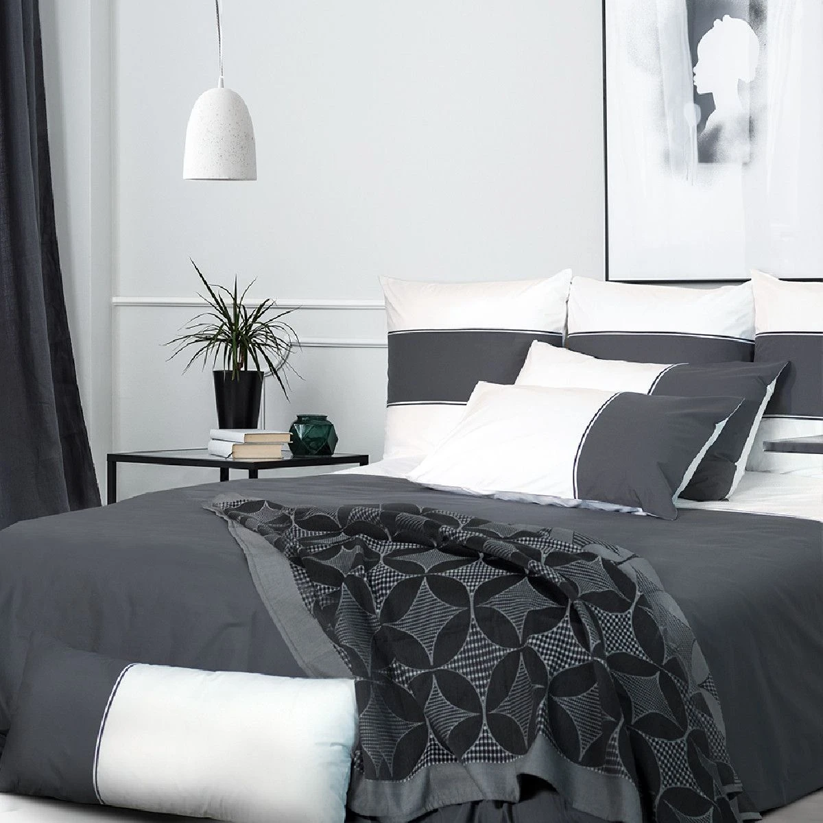 Assemblage gris-blanc intemporel et raffiné. La beauté de lignes pures, le naturel du coton bio (100% coton issu de l’agriculture biologique) et l’élégance du double passepoil font de cette parure un must.. Caractéristiques de Housse de couette Capri ardoise blanc :