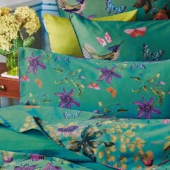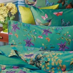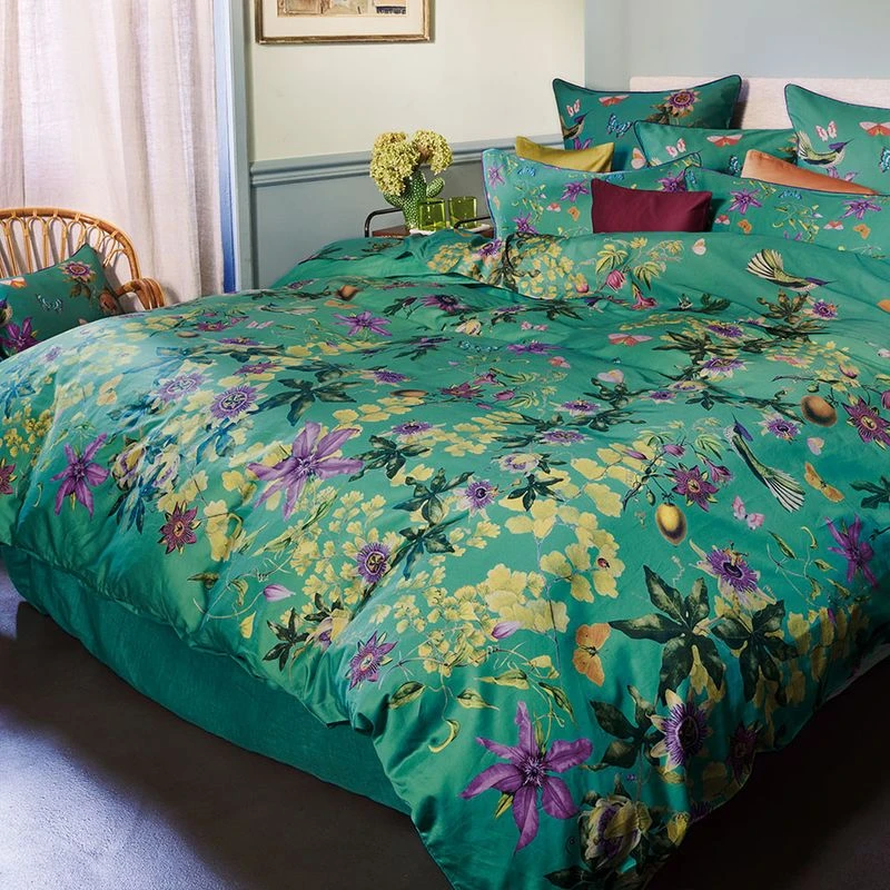 Housse de couette satin de coton 120 fils/cm² emeraude Passiflore emeraude GARNIER-THIEBAUT