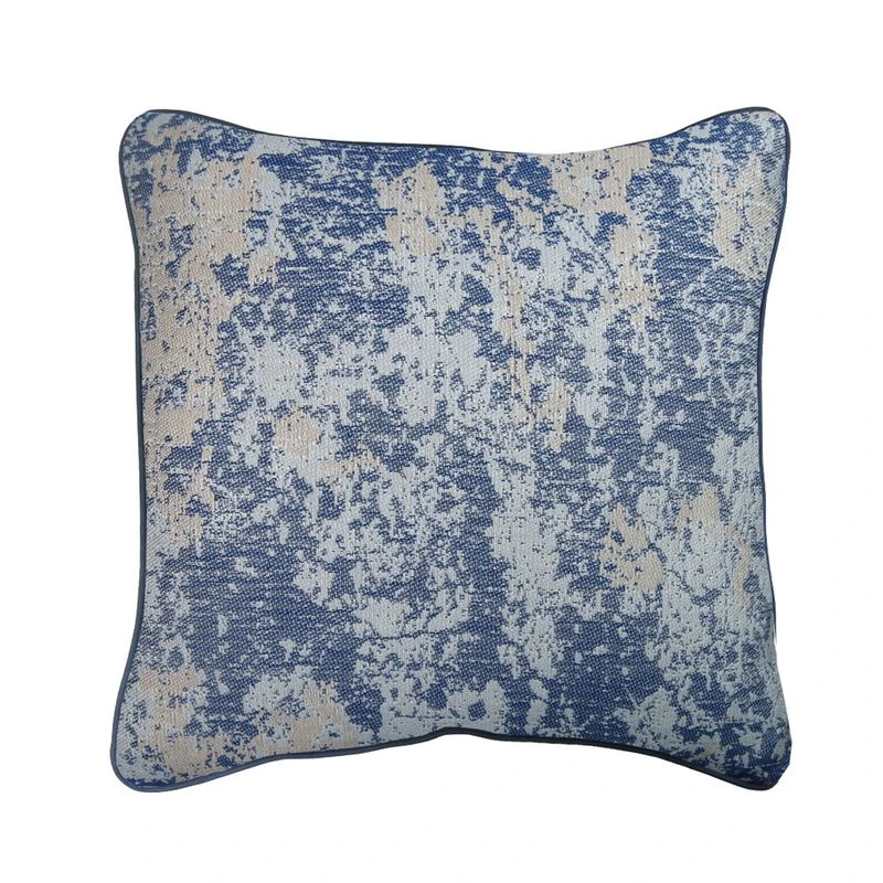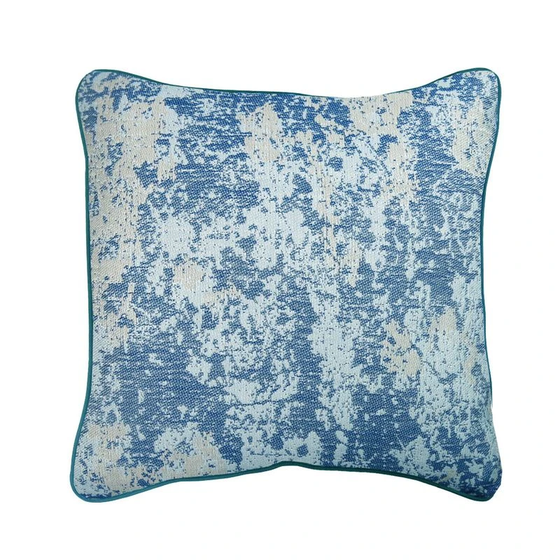 Housse de coussin 100% coton damassée. Made in France. Design moderne aux effets texturés. Le plaisir d’embellir son lit avec des plaids , couvre-lits et housses de coussins tissés dans les Vosges.. Caractéristiques de Housse de coussin Oxyd blue :