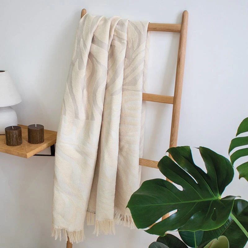 Jete de canape coton & autres fibres Zebrures creme GARNIER-THIEBAUT