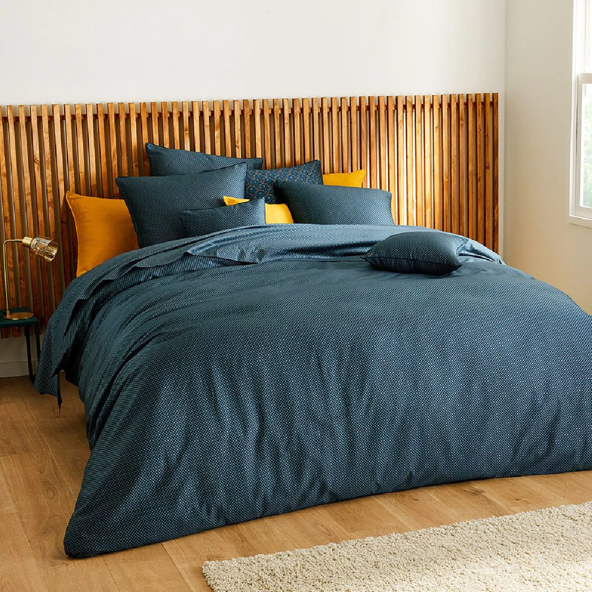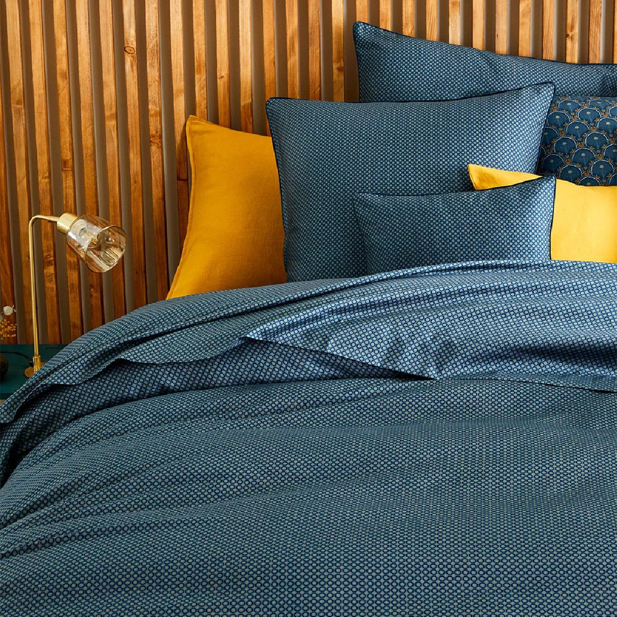 Lot h.couette +taies satin de coton Othello bleu GARNIER-THIEBAUT
