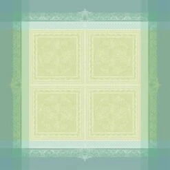 Nappe 100% coton damassé (jacquard) fabriquée en France à Gérardmer. Linge des Vosges. Cette nappe bénéficie du traitement anti-tache Green Sweet : votre linge de table reste propre et net.. Caractéristiques de Nappe Isabelle amande antitache déperlant :
