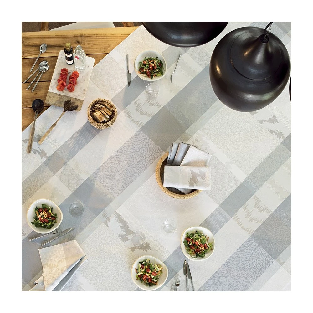 Fabriquée en France grâce au savoir-faire du grand spécialiste français du linge de maison Garnier-Thiebaut, cette nappe 100% jacquard de coton est d’une