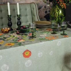 Nappe imprimée métis lin & coton Bouquet du soleil sauge GARNIER-THIEBAUT
