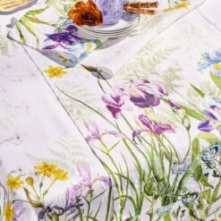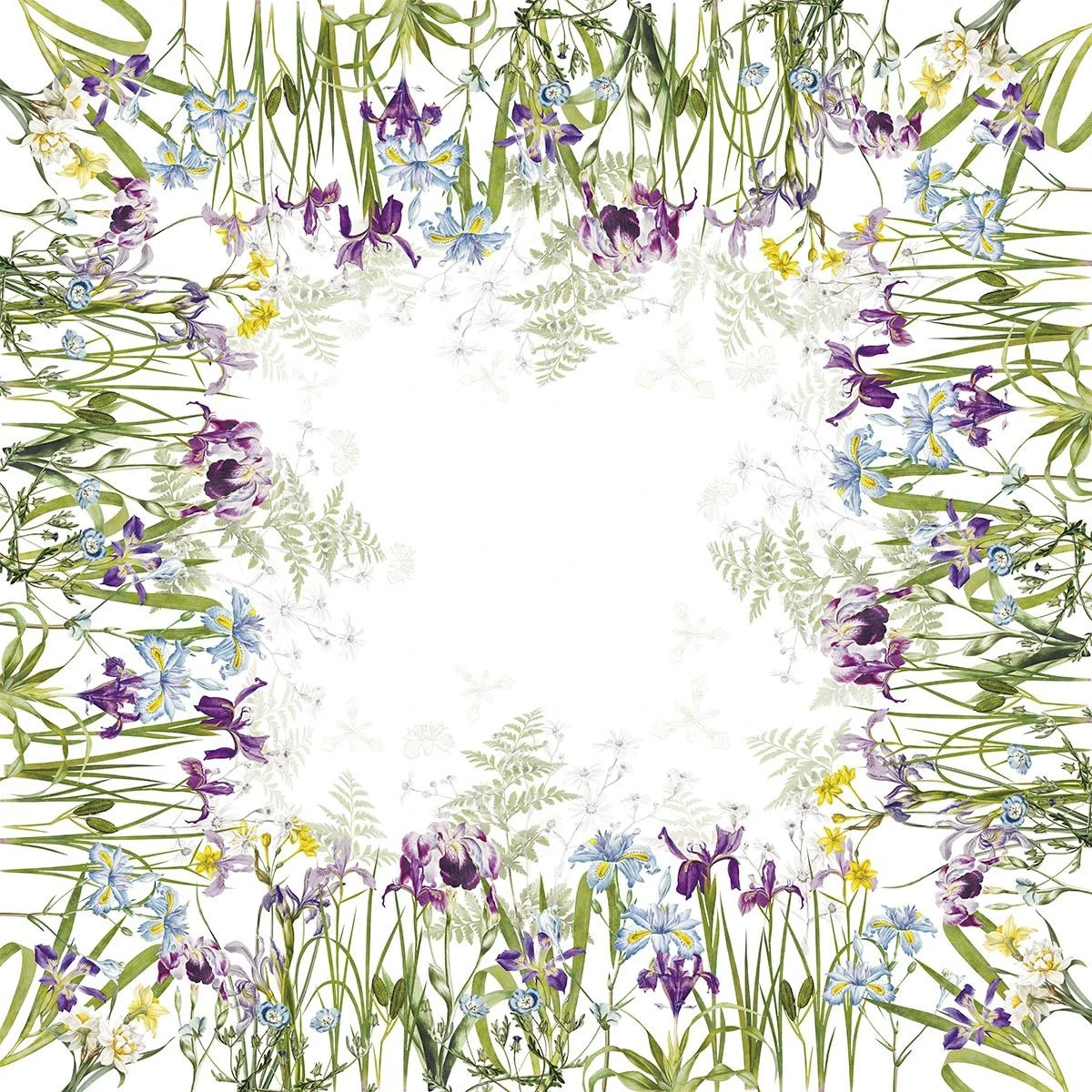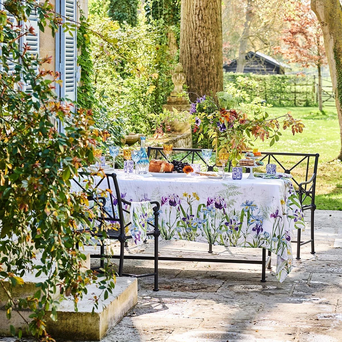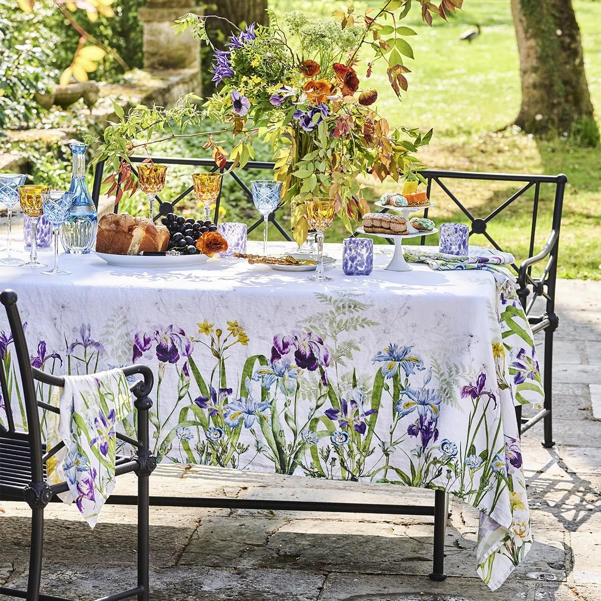 Nappe imprimée pur lin Iris d’hiver blanc GARNIER-THIEBAUT