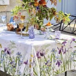 Nappe imprimée 100% lin lavé. Tissu prélavé pour plus de souplesse et un effet légèrement froissé permanent (repassage inutile). Du fait du lavage, les dimensions peuvent varier d’un produit à l’autre, les dimensions indiquées sont basées sur une moyenne des résultats observés.. Caractéristiques de Nappe Iris d’hiver blanc lavé :