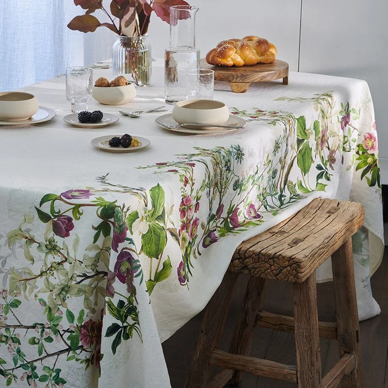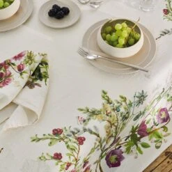 Nappe imprimée 100% lin lavé. Tissu prélavé pour plus de souplesse et un effet légèrement froissé permanent (repassage inutile). Du fait du lavage, les dimensions peuvent varier d’un produit à l’autre, les dimensions indiquées sont basées sur une moyenne des résultats observés.. Caractéristiques de Nappe Justine naturel lavé :