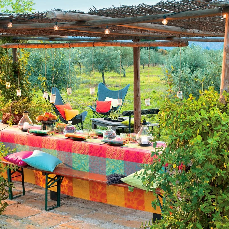 Nappe jacquard pur coton Mille buissons floraison GARNIER-THIEBAUT