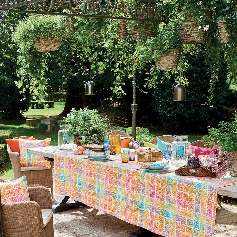 Nappe jacquard pur coton Mille paons festival GARNIER-THIEBAUT