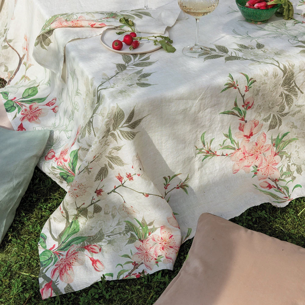 La nappe OMBRES DES CERISIERS est pensée et est fabriquée en France par Garnier Thiebaut.