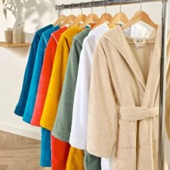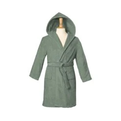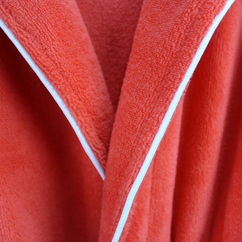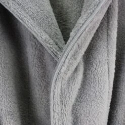 - . Finitions : passepoil façon cordelette très résistant le long de la capuche, de l’ouverture centrale et au bout des manches ; 2 poches ; ceinture fixée dans le dos ; Composition : 50% coton 50% polyester