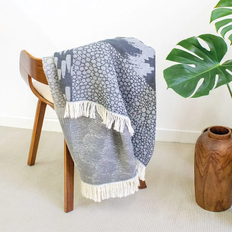 Plaid réversible en mélange coton/laine (72% coton, 28% laine acrylique). Qualité made in France. Linge des Vosges. Plaid chaud, idéal pour l’automne-hiver, il est gratté sur les deux côtés pour un toucher plus doux.. Caractéristiques de Plaid Matieres nuage :