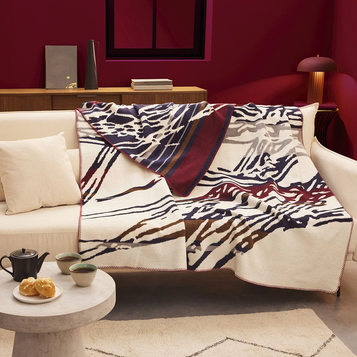 Plaid jacquard réversible. 70% coton / 30% acrylique. Plaid chaud, idéal pour l’automne-hiver, il est gratté sur les deux côtés pour un toucher plus doux.. Caractéristiques de Plaid Mezzo navy :