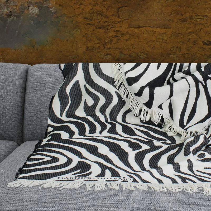 Plaid coton & autres fibres Zebre noir et blanc GARNIER-THIEBAUT