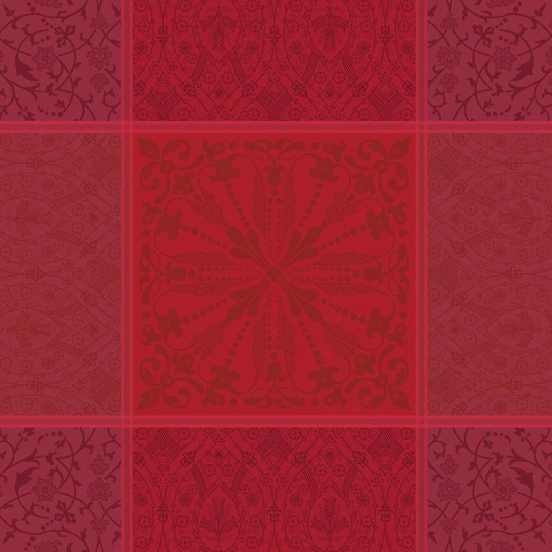 Serviette 100% coton damassé (jacquard) fabriquée en France à Gérardmer. Linge des Vosges.. Caractéristiques de Serviette Cassandre grenat :