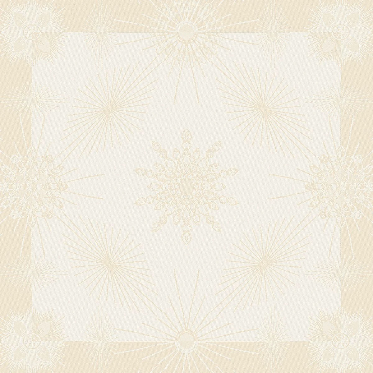 Serviette 100% coton damassé (jacquard) fabriquée en France à Gérardmer. Linge des Vosges. Motif de flocons de neige stylisés comme des joyaux précieux.. Caractéristiques de Serviette Joyaux d’hiver ivoire :
