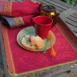 Set de table 100% coton damassé (jacquard) fabriqué en France à Gérardmer. Linge des Vosges. Motifs dont la finesse est particulièrement mise en valeur par le tissage en compte serré. Ce set de table bénéficie du traitement anti-tache Green Sweet : votre linge de table reste propre et net.. Caractéristiques de Set Isaphire emeraude antitache déperlant :