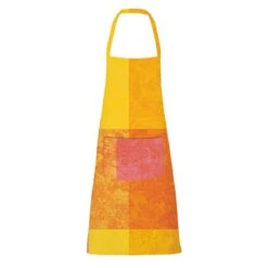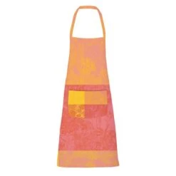 Tablier de cuisine 100% coton damassé enduit, fabriqué en France à Gérardmer. Linge des Vosges. Pratique, il est muni d’une poche sur le côté.. Caractéristiques de Tablier Mille esprit jardin solaire enduit imperméable :