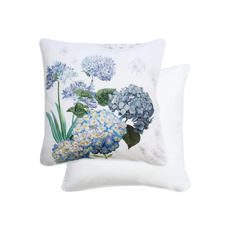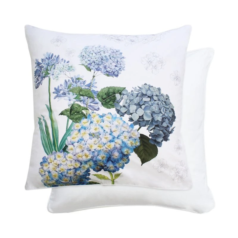 Taie d’oreiller en percale 100% coton 80 fils/cm² avec motifs imprimés. Verso uni blanc. Qualité made in France. Linge des Vosges. Draps housses unis assortis : Olana Blanc, Ava blanc. Caractéristiques de Taie d’oreiller Maelys bleu :