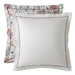 - . Finitions : Taie à volant avec bourdon bordeaux sur l’encadrement ; 40×40 cm avec fermeture zip ; garniture vendue séparément