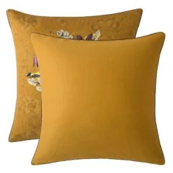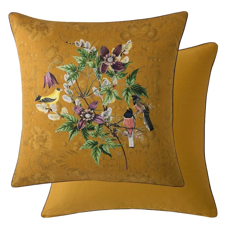 Taie d’oreiller satin de coton 120 fils/cm² curry Chants d’oiseaux curry GARNIER-THIEBAUT