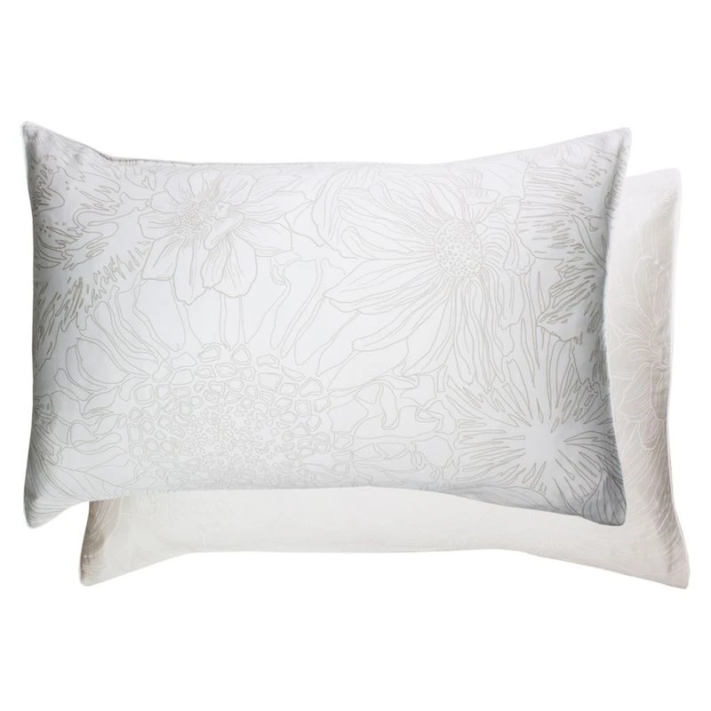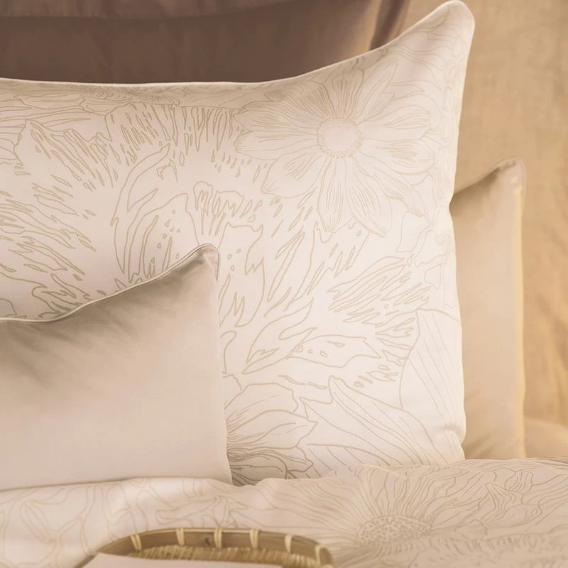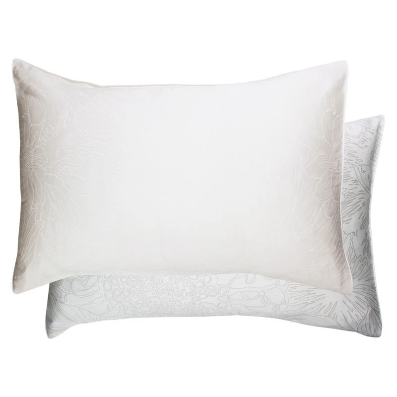 Taie d’oreiller imprimée recto et verso sur satin de coton 120 fils/cm², 100% coton, doux et soyeux. All over de fleurs blanches sur le dessus, fleurs beiges au verso. Grâce à sa fermeture avec un double rabat, cette taie est réversible.. Caractéristiques de Taie d’oreiller Flower power white :