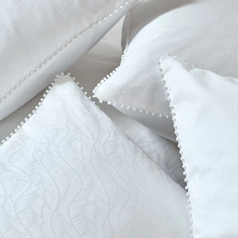 Taie d’oreiller blanche 100% coton satin damassé (jacquard) 130 fils/cm². Qualité made in France. Linge des Vosges.Recto all over jacquard et verso satin uni Ava blanc.. Caractéristiques de Taie d’oreiller Alula blanc :