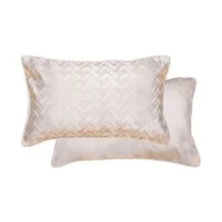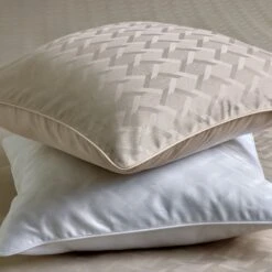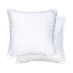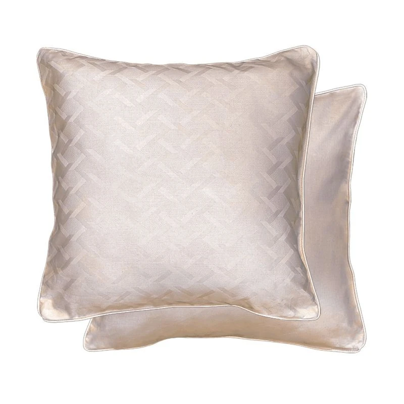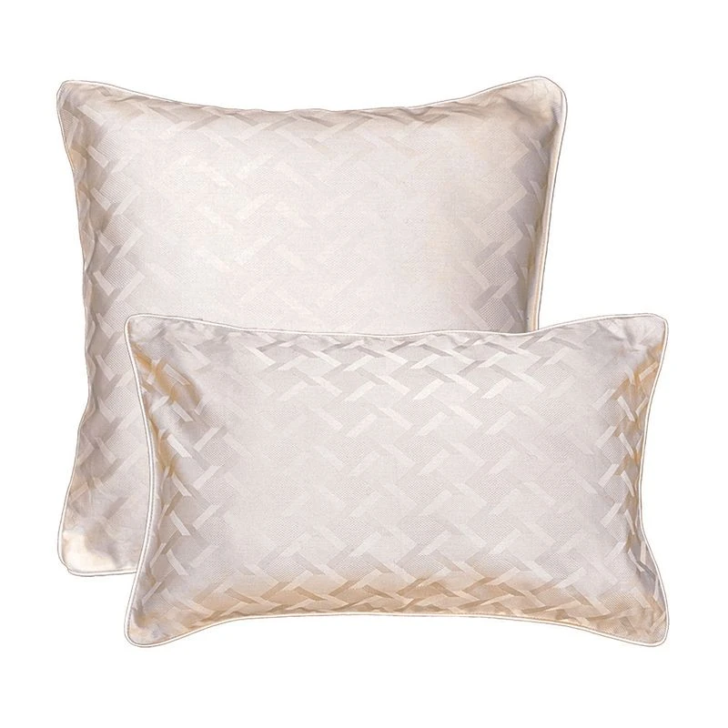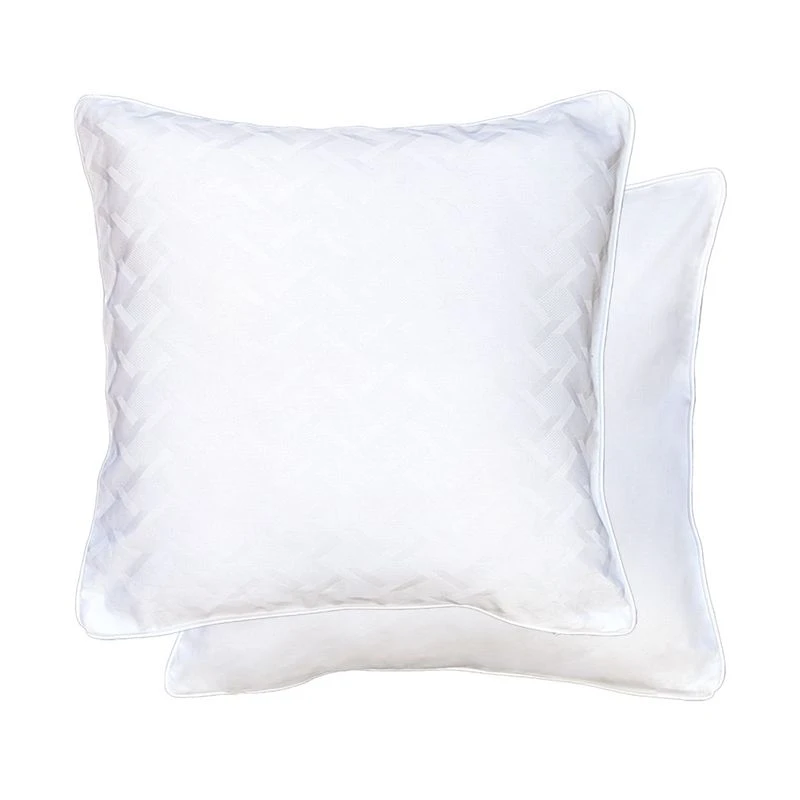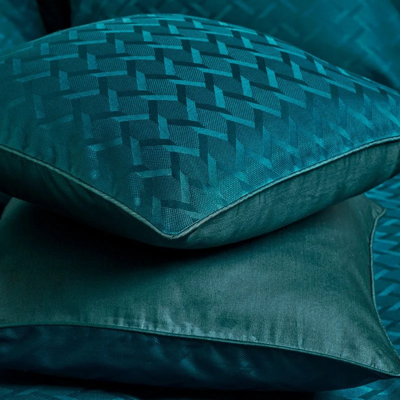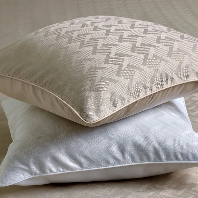 Housse de coussin unie en satin de coton damassé (jacquard) tissée en France à Gérardmer (Vosges). Verso Ava uni blanc en satin de coton 120 fils/cm². 100% coton.. Caractéristiques de Taie d’oreiller Adagio crepuscule :
