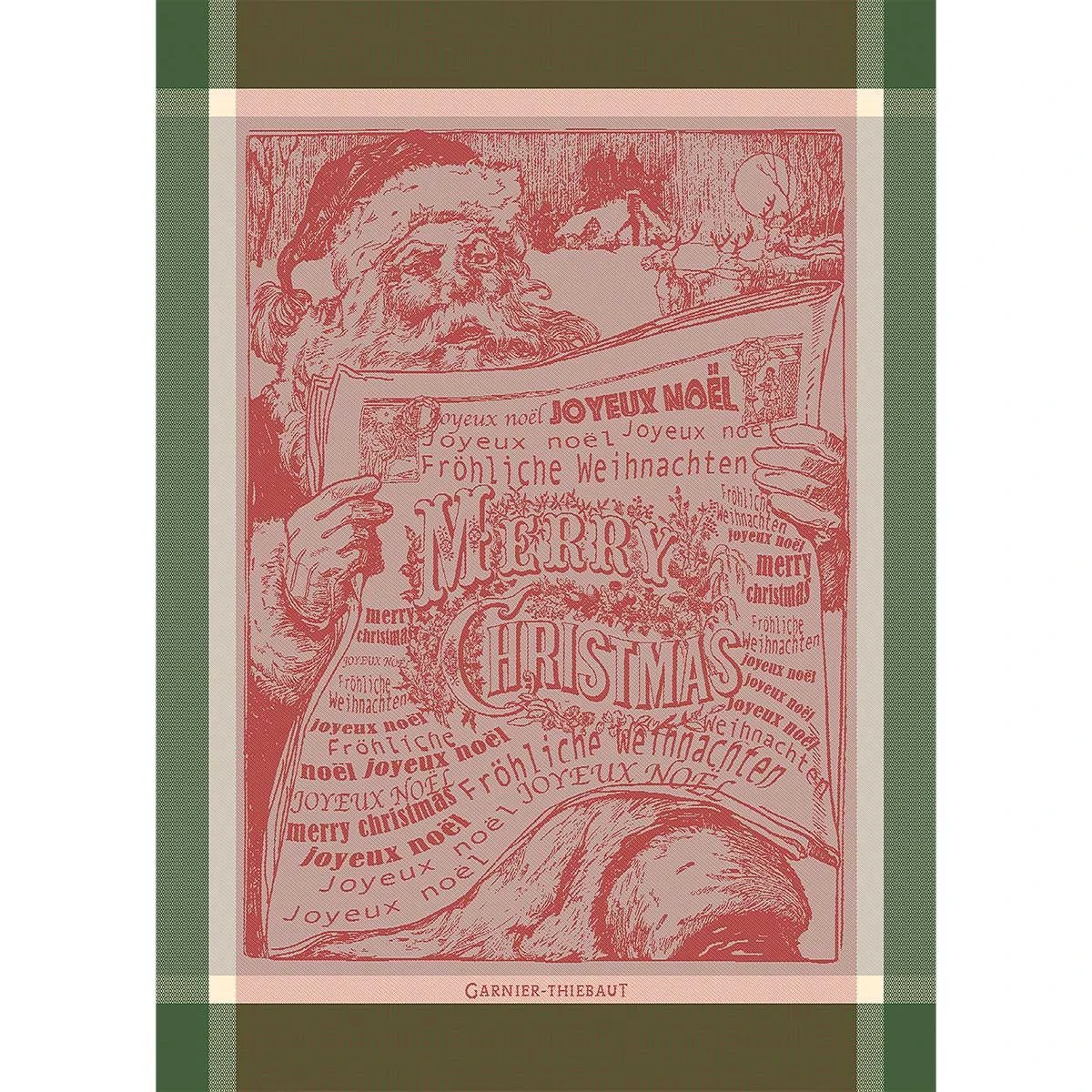 Torchon pur coton Journal du pere noel rouge GARNIER-THIEBAUT